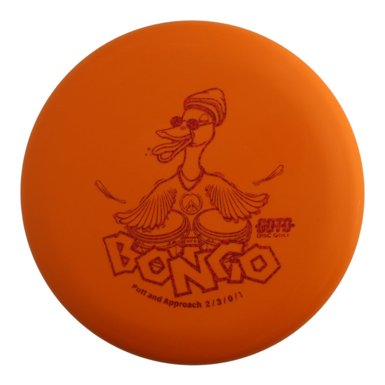 The Bongo, a Canadian-crafted disc golf putter, is designed to cruise straight. It is beadless and is perfect for putting and short-range shots. Weighing about 160 grams, the Bongo suits newer players and experienced players alike who don't need a heftier weight.